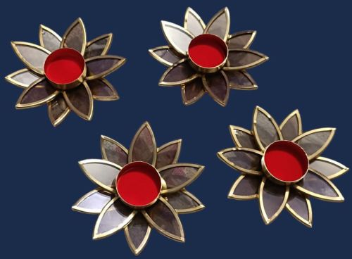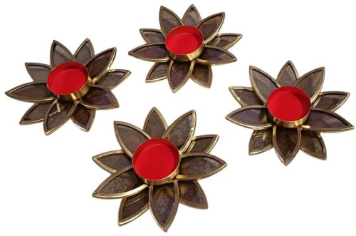 Open Lotus Brass T-light Candle Holder